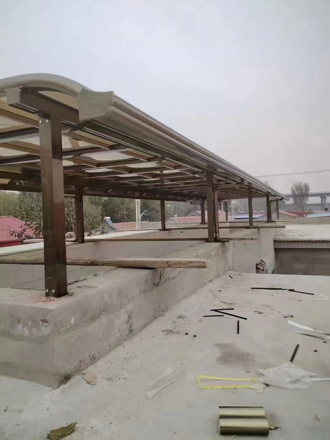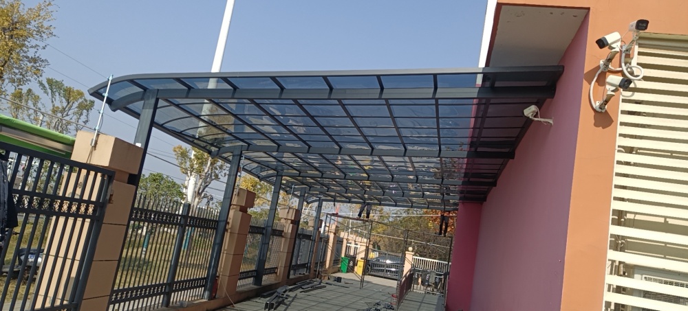 鋁合金雨棚具有耐酸、耐堿、防腐、透光透明等復合功能,是由德國進口的聚碳酸酯加工而成的板材,具有抗沖擊優(yōu)勢,享有“不破玻璃”、“響鋼”的美稱,是制作防暴盾牌的材料之一,因此用耐力板做的雨棚也非常抗沖擊,就算用錘頭砸也不容易砸壞。耐力板表面有特殊工藝噴涂過的UV涂層保護著板材本身,風吹日曬也不會老化變色,因此使用20年都不是問題。市場上會有以次充好的耐力板雨棚,要安裝能使用20年的耐力板雨棚一定要找有品質保證的大牌商家。